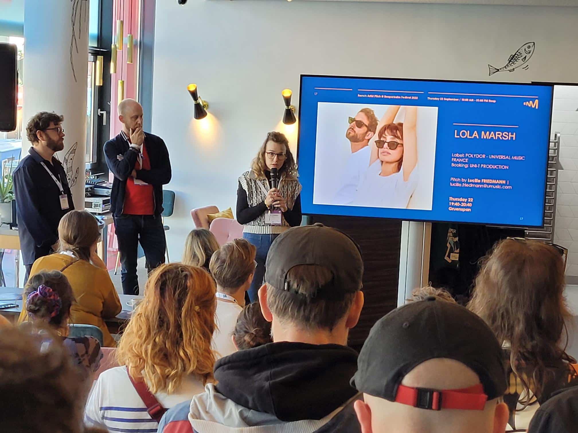 Le « French Artist Pitch Breakfast » organisé par le CNM in situ a donné aux représentants des groupes français programmés à l’affiche l’occasion de pitcher leur projet devant plus d’une soixantaine d’invités professionnels VIP internationaux (directeurs de festivals, tourneurs, éditeurs, A&R, superviseurs musicaux, managers…).