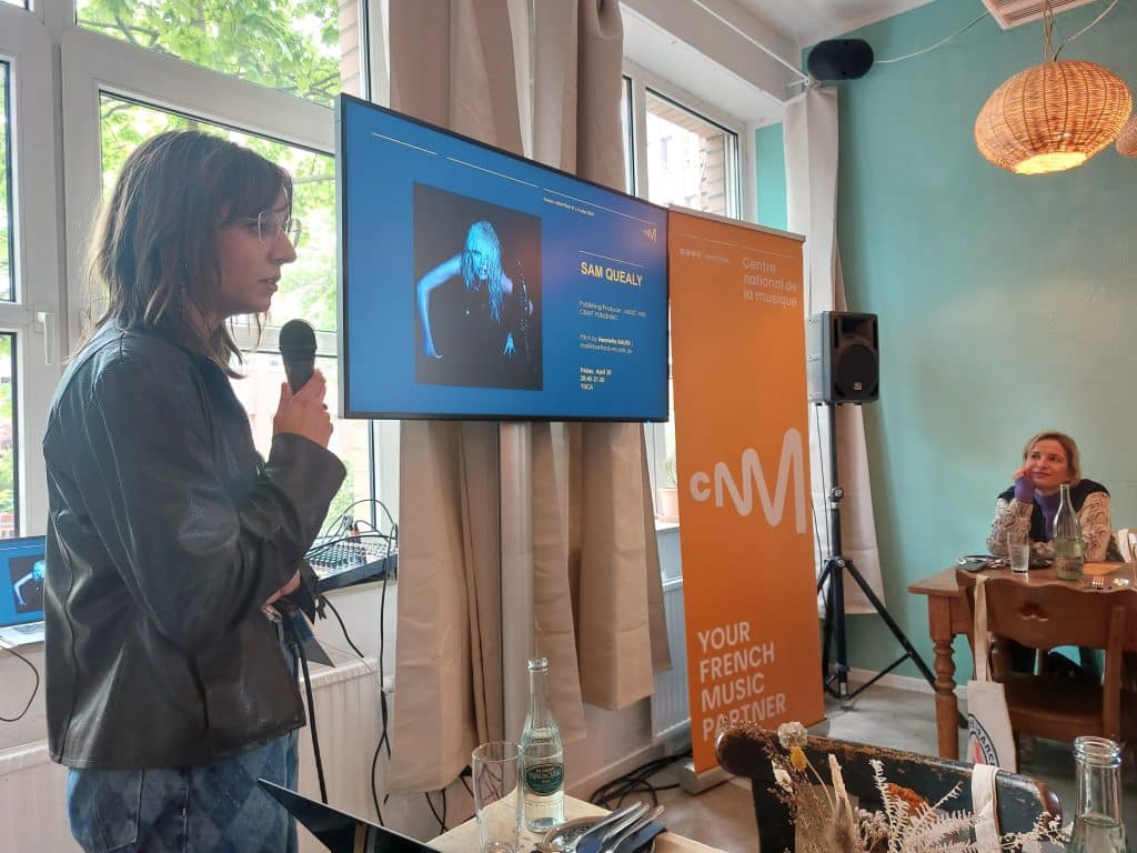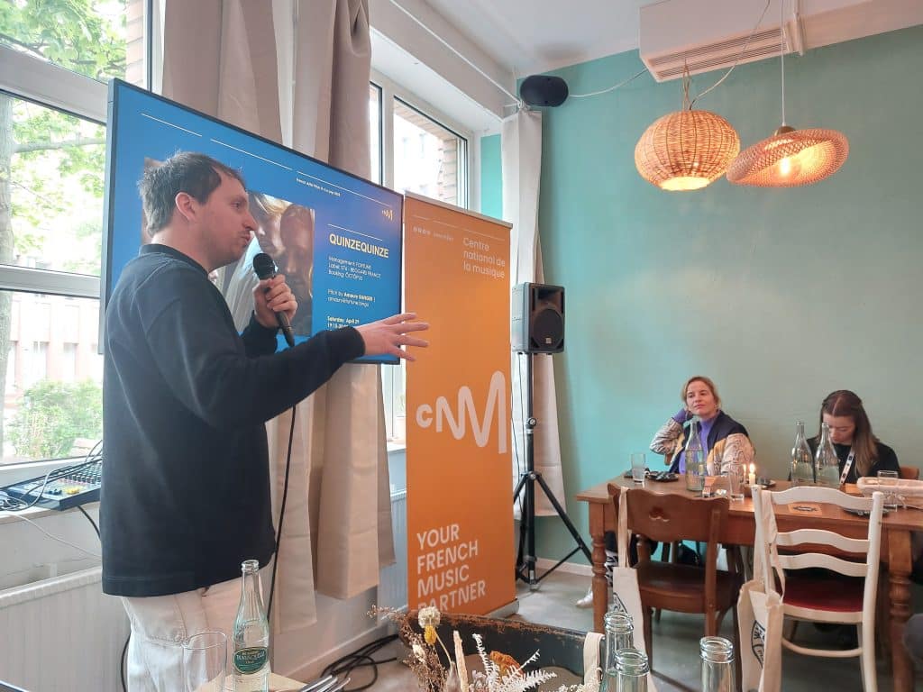Dans le cadre d’un French Artist Pitch organisé par le CNM in situ, les représentants des artistes français à l’affiche ont pu présenter leurs projets devant une quarantaine d’invités professionnels internationaux prescripteurs et réseauter avec de potentiels partenaires export pour leurs projets de développement respectifs.