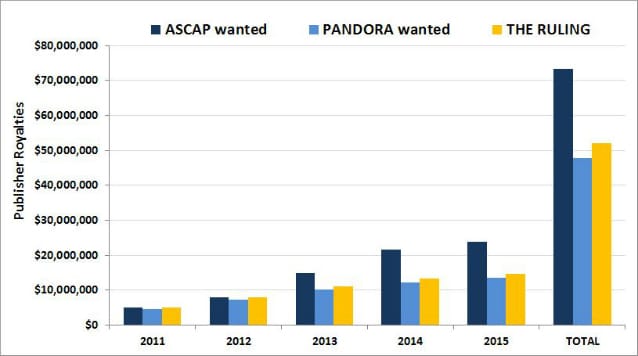 Aux États-Unis, un service de streaming semi-interactif comme Pandora, qui doit respecter un certain nombre de limitations le retour en arrière et la répétition d’un titre sont impossibles ; le nombre de sauts pour passer au titre suivant est limité à six par heure ; et il n’est pas possible de n’écouter que la musique d’un seul et même artiste, relève d’un régime de gestion collective obligatoire des droits de la musique, avec des taux de royalties à reverser aux ayants droit qui sont fixés par le Bureau du copyright américain (la Commission américaine du droit d’auteur). Quelques mois auparavant, le Bureau du copyright a revu à la hausse les droits d’exécution publique que Pandora et des services similaires doivent reverser, lesquels doivent plus que doubler d’ici à 2010. Un coup dur pour le service de radio interactive. « J’étais dans le bus quand j’ai reçu le message sur mon smartphone Treo », raconte Tim Westergren au Washington Post. « J’ai pensé : nous sommes morts. Nous perdons déjà de l’argent. Si cette question n’est pas réglée, nous devrons mettre un terme à nos opérations. »