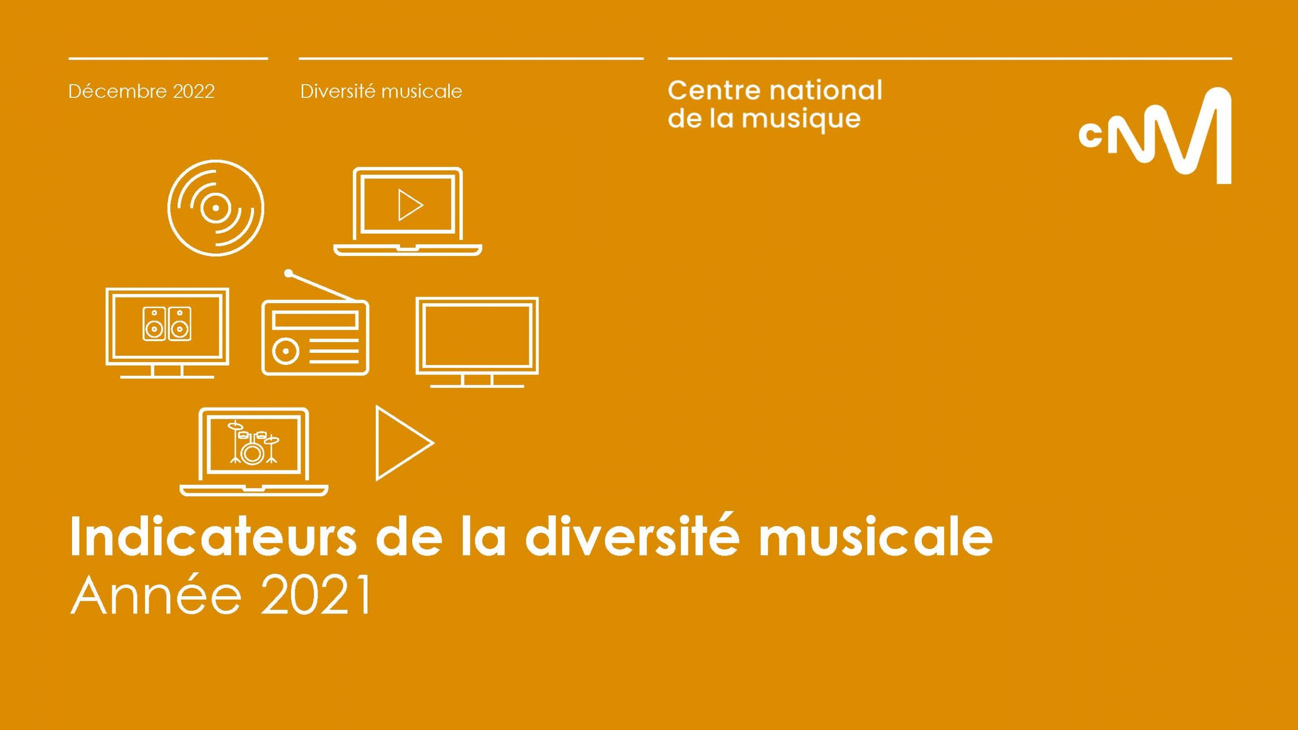 En décembre 2022, le CNM publie son rapport annuel sur la diversité musicale dans les médias en 2021 appréhendée sous tous ses aspects (diversité des titres et des artistes, exposition des œuvres francophones et de production française, répartition des esthétiques musicales, répartition du genre du lead, renouvellement de la création) et, pour la première fois, sur tous les supports (production phonographique et streaming en plus des traditionnels rapports TV et radio).