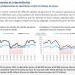 Pendant la crise sanitaire, l’emploi des hommes dans le spectacle est proportionnellement plus impacté que celui des femmes. Par ailleurs, les femmes sont plus nombreuses parmi les permanents mais les masses salariales sont plus élevées parmi les hommes.